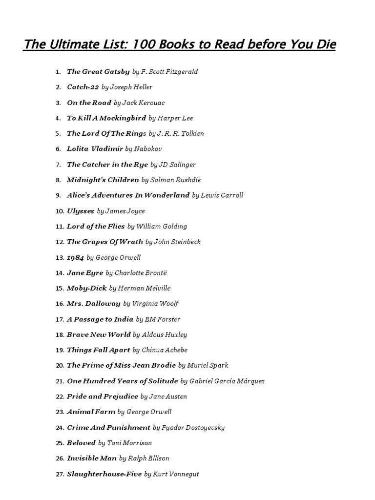 100 Books To Read Before You Die List