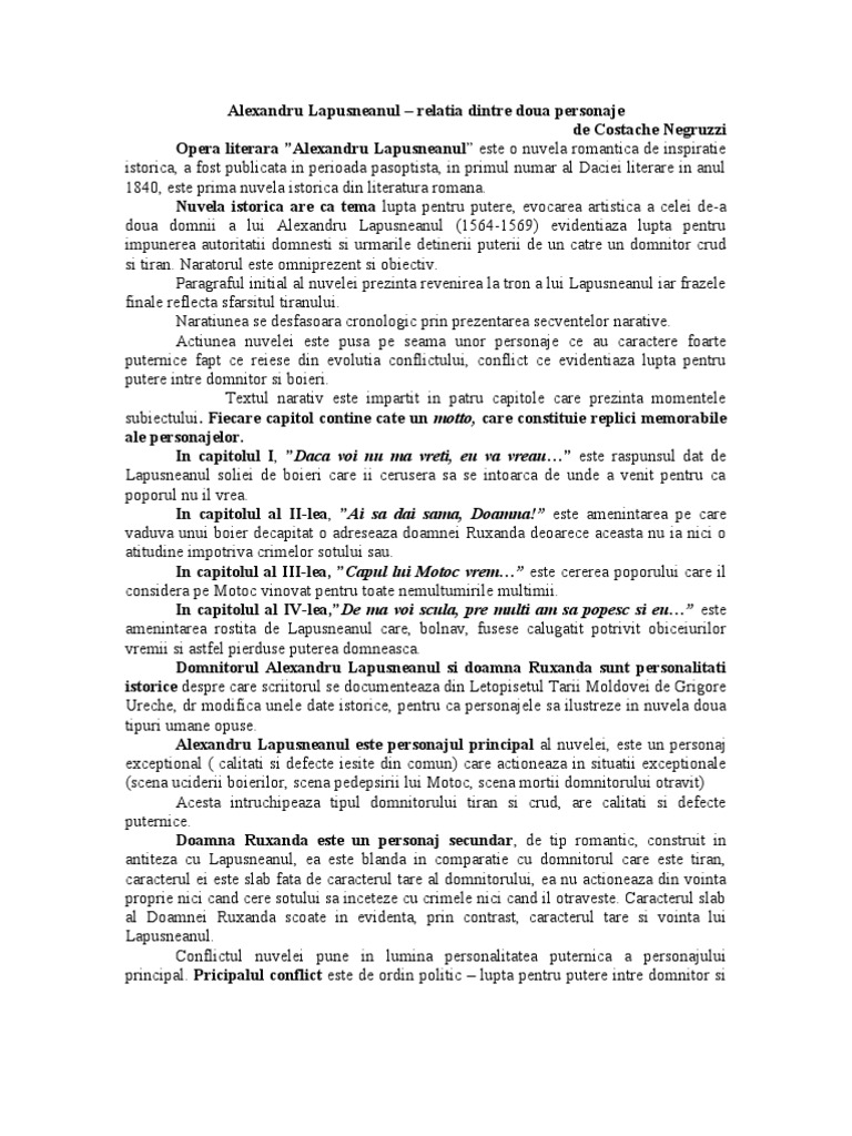 Relatia Dintre Doua Personaje Alexandru Lapusneanu