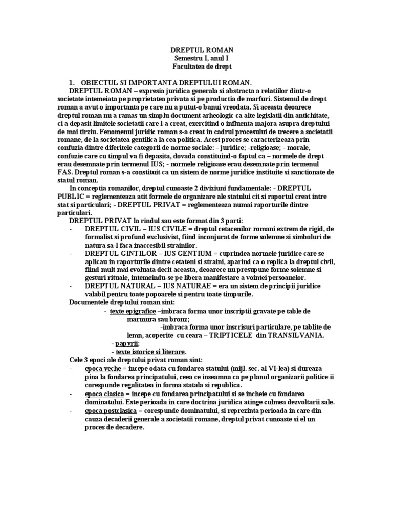 Sinteza Drept Roman Anul 1 Curs Emil Molcut