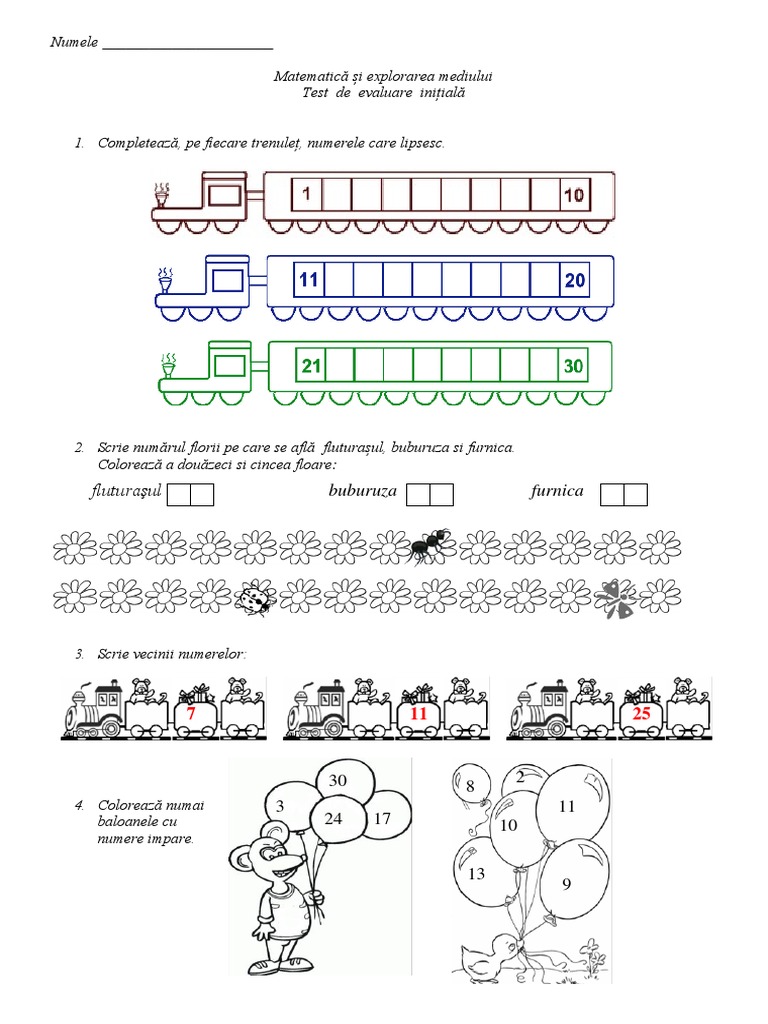 Fise De Evaluare Initiala Mem Matematica Si Explorarea Mediului Clasa Pregatitoare Fise De Lucru Gra Kids Math Worksheets Math For Kids Math Worksheets