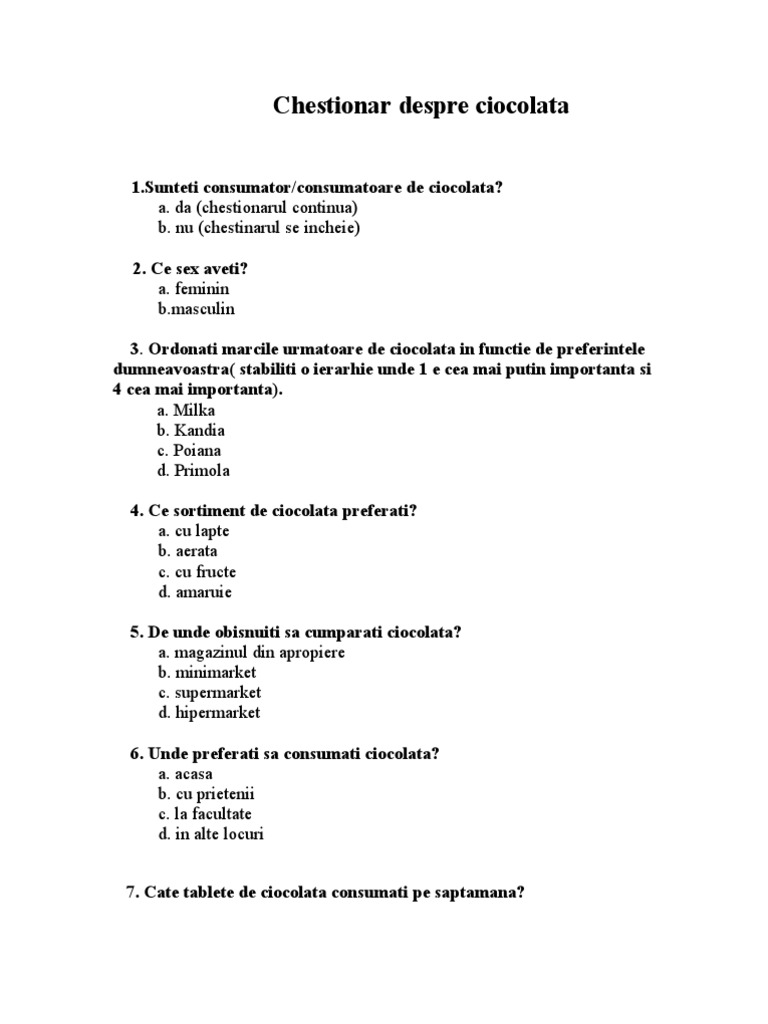Doc Chestionar Despre Ciocolata Ofelia Predescu Academia Edu