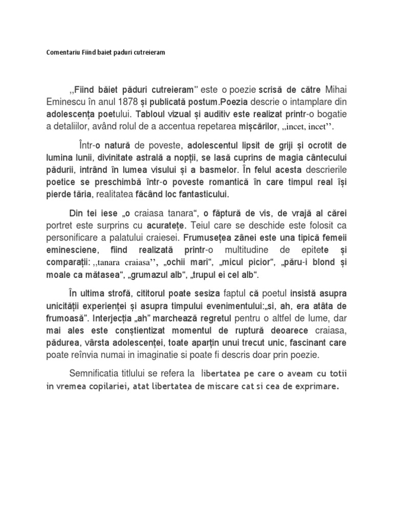 Fiind Baiet Paduri Cutreieram Fisa De Lectura