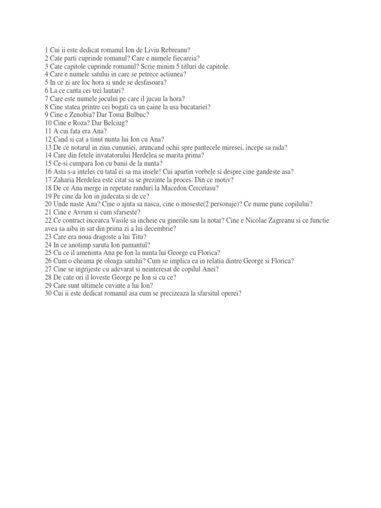 1 Cui Ii Este Dedicat Romanul Ion De Liviu Rebreanu