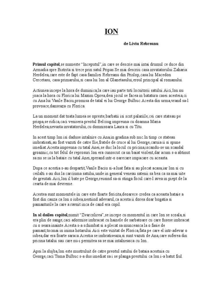 Doc Ion De Liviu Rebreanu Rezumat Cristy Adrian Academia Edu
