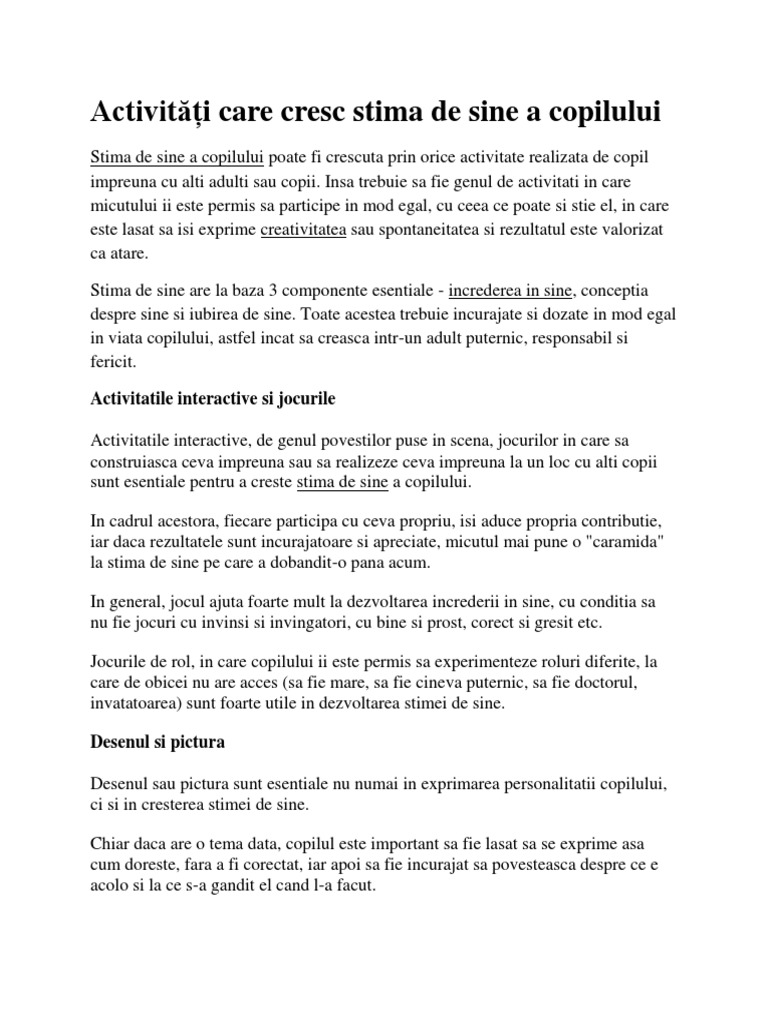 Exercitii La Clasa Pentru Cresterea Abilitatii Stimă De Sine Pozitivă A Prescolarilor Si Elevilor