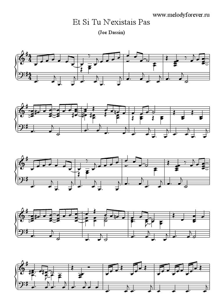 Et Si Tu N Existais Pas Joe Dassin Sheet Music For Piano Solo Musescore Com