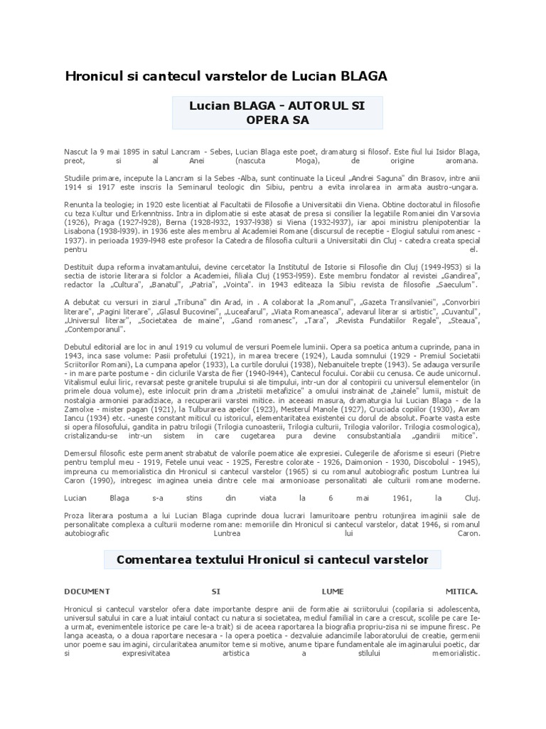 Lucian Blaga Hronicul Si Cantecul Varstelor