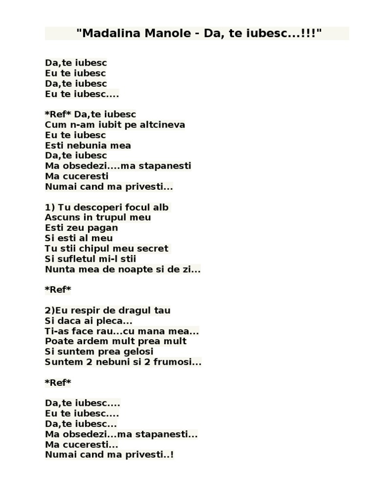 Mădălina Manole Da Te Iubesc Lyrics Genius Lyrics