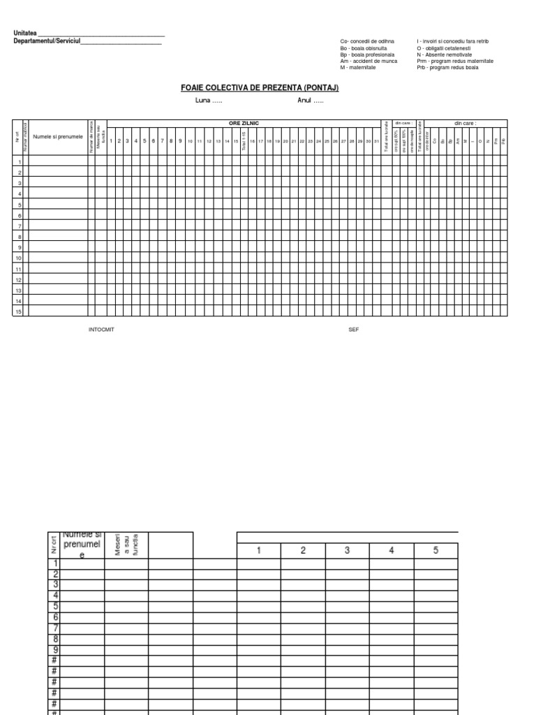 Model Pontaj Foaie Prezenta