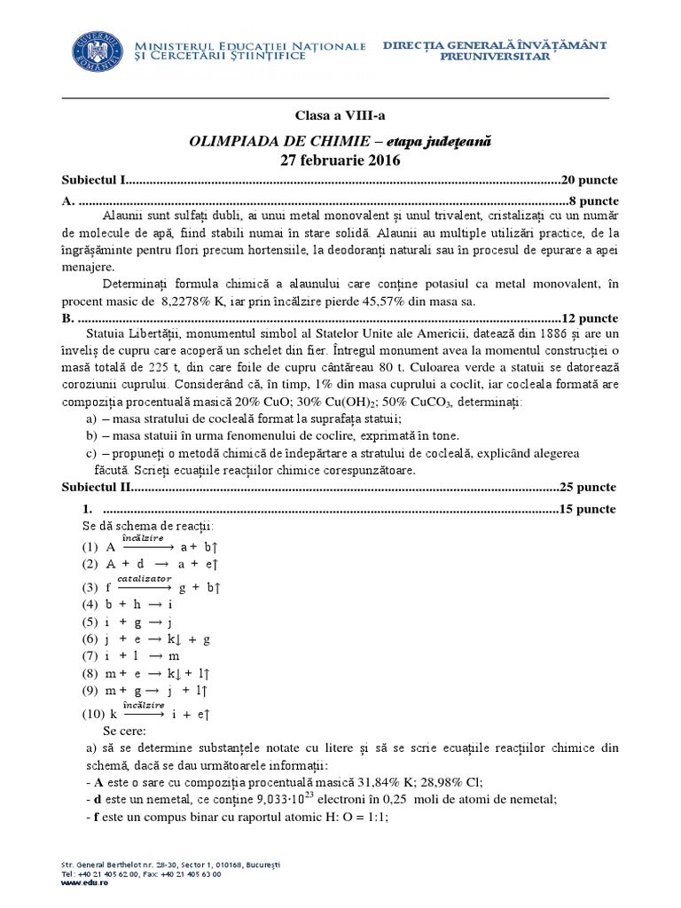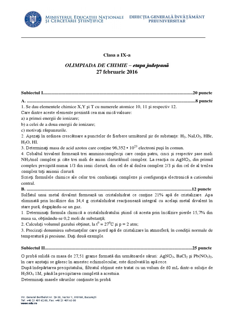 Subiecte Si Bareme Olimpiada Judeteana De Chimie 2016 Clasa A Ix A