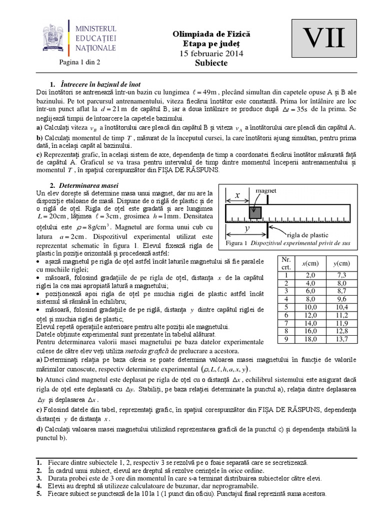Olimpiada Fizica 2014 Etapa Judeteana Clasa A Viia Subiecte Si Bareme