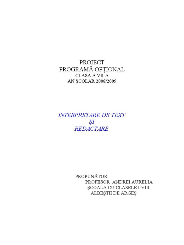 Optional Limba Si Literatura Romana Clasa A Viii A