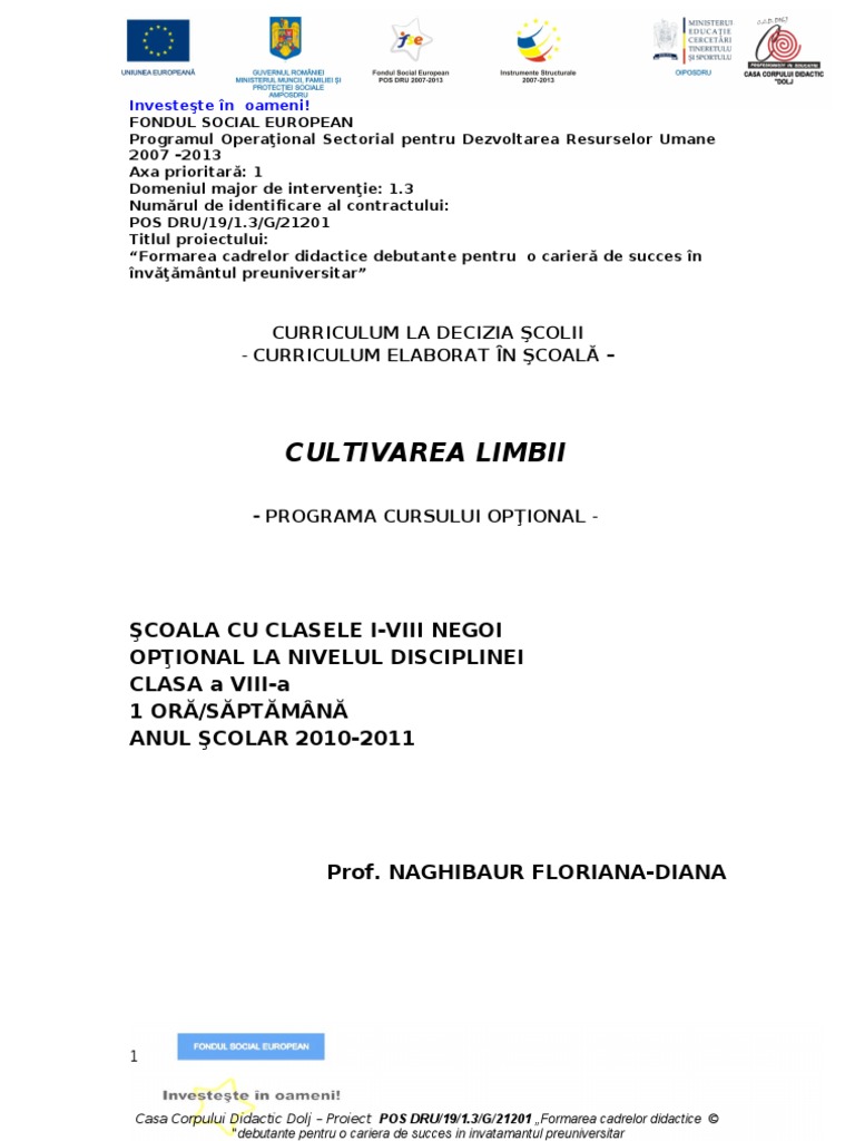 Cultivarea Limbii Cds Limba Si Literatura Romana Clas A Viii A