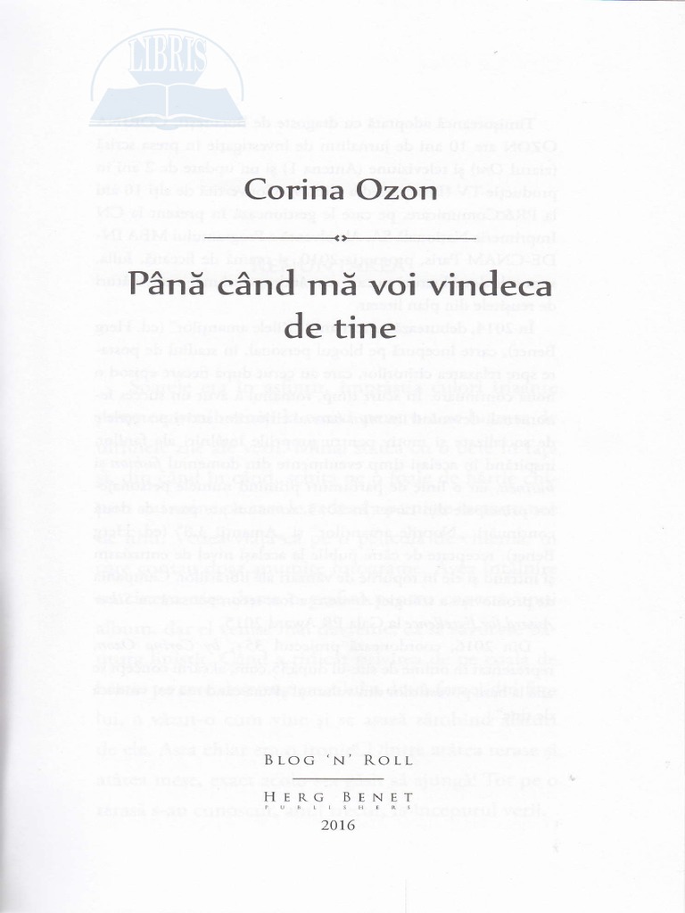 Cartea pana cand ma voi vindeca de tine corina ozon in format pdf oare de ce atunci când ne regăsim suntem năpădiți de regrete. Oare chiar suntem condamnați la eterna reîntoarcere la uroboros. Avea femei cam peste tot unde se ducea. Pe internet sunt diponibile la download ilegal in format digital pdf mobi epub o parte dintre cartile care despre care am scris pe acest site.