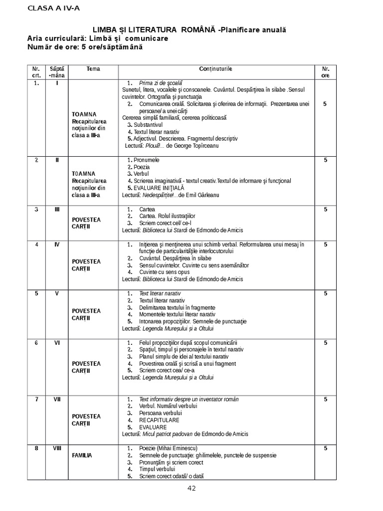 Planificare Ars Libri Clasa A Iv A