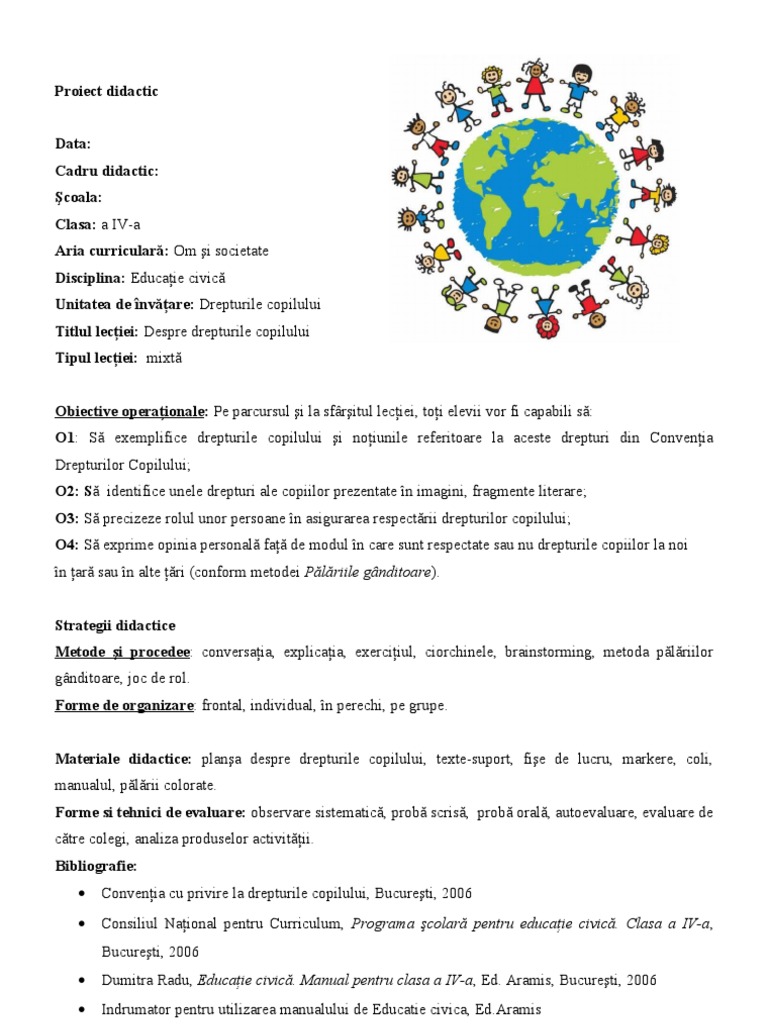 Doc Proiect De Lectie Clasa A Iv A Educatie Civica Drepturile Copilului Vazute Prin Ochi De Copil Logan Rugina Academia Edu