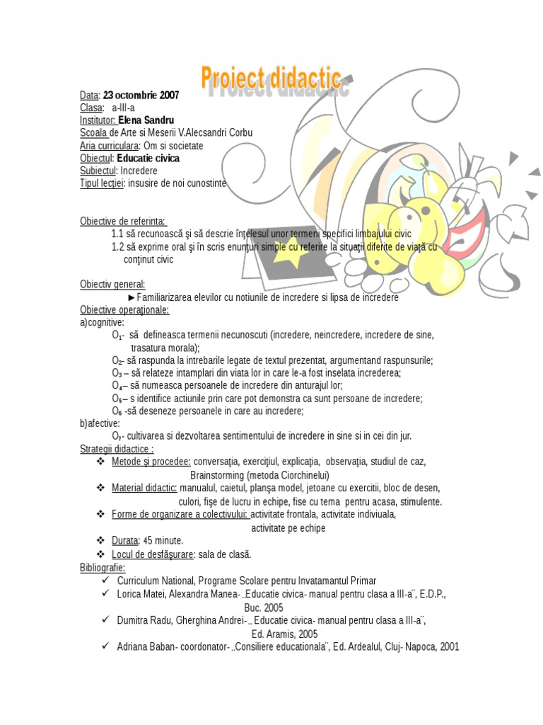 Proiect Proiect Didactic Educatie Civica Pedagogie 380798