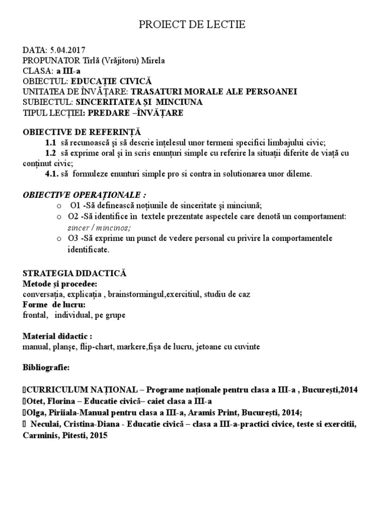 Proiect De Lectie Ed Civica Cls A Iii A