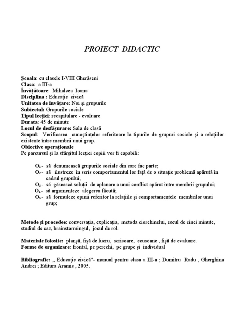 Proiect Didactic La Educatie Civica