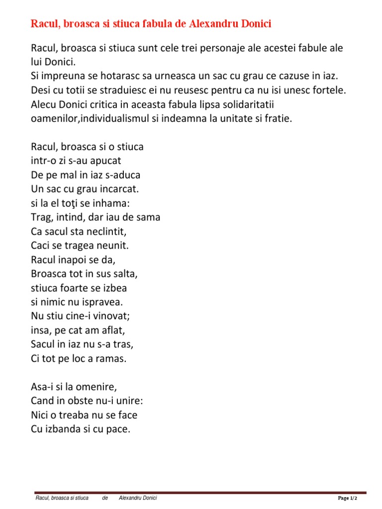 Al Donici Fabule Racul Broasca Si Stiuca