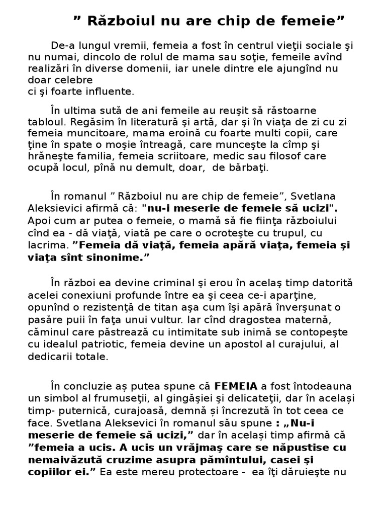 Fragment Războiul Nu Are Chip De Femeie De S Aleksievici