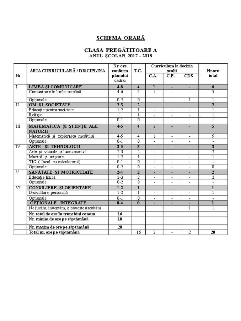 Schema Orara Clasa Pregatitoare 2017 2018