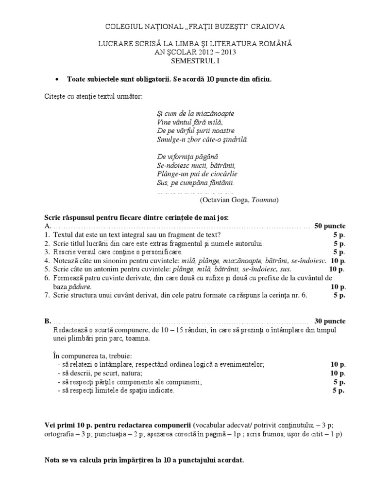 Teză Cu Subiect Unic Limba Romană Clasa A 8 A An școlar 2018 2019 Semestrul 1 Subiect și Barem Tsu Isj Ilfov Jitaruionelblog Pregatire Bac Si Evaluarea Nationala 2020 La Matematica Si Alte