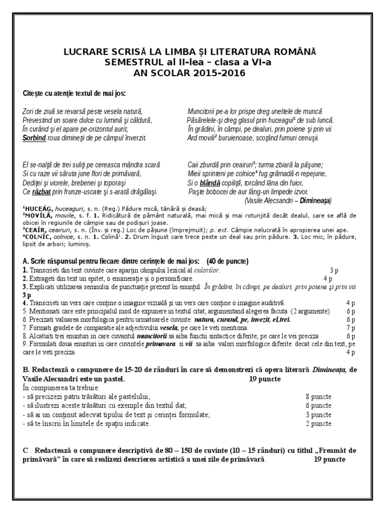 Evaluare Nationala 2016 Subiectele Si Baremul La Limba Romana Pastelul Si O Compunere Nu M Am Pregatit Foarte Mult Stirileprotv Ro